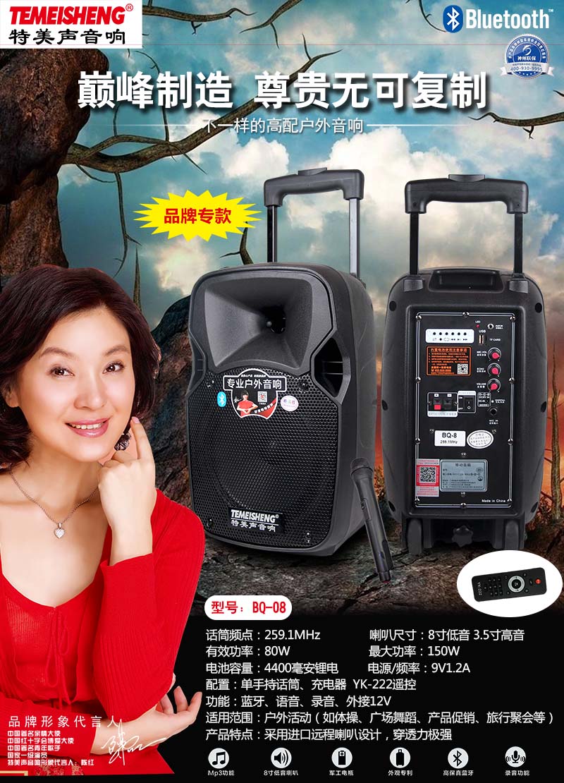 话筒频点:259.1MHz 喇叭尺寸:8寸低音 3.5寸高音